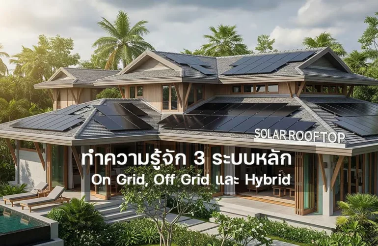 08 Aug, 2025 Highlight & Knowledge ทำความรู้จัก 3 ระบบหลักของโซลาร์รูฟท็อป On Grid, Off Grid และ Hybrid