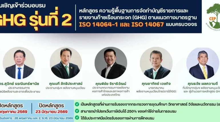 ขอเชิญเข้าร่วมอบรม หลักสูตร ความรู้พื้นฐานการจัดทำบัญชีรายการและรายงานก๊าซเรือนกระจก (GHG)